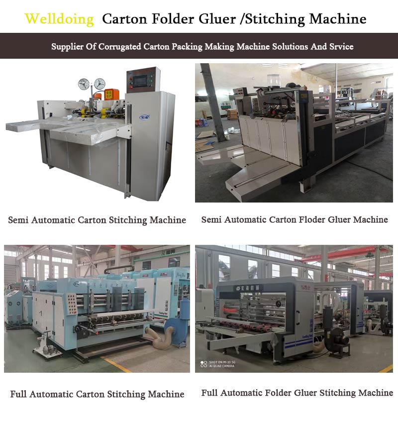 We also have other packaging machines: partition assembly machine china 、 semi automatic stitching machine for box 、 full automatic box stitcher machine 、 automatic corrugated box folder gluer stitcher machine 、 flexo ink sewage treatment clear equipment 、 paper angle edge corner making machine 、 air bubble film machine 、 printer die cutter slotter machine 、 hard paper board production line 、 EPE tube making machine 、 paper tube machine 、corrugated cardboard folder gluer machine and so on.